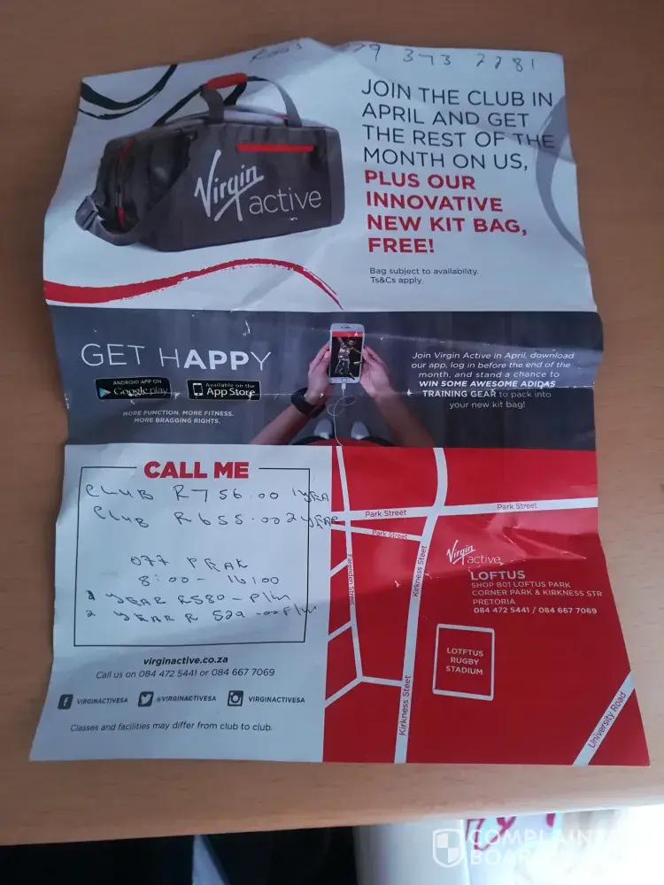 Virgin Active South Africa misleading information and promises to get me to take a contract