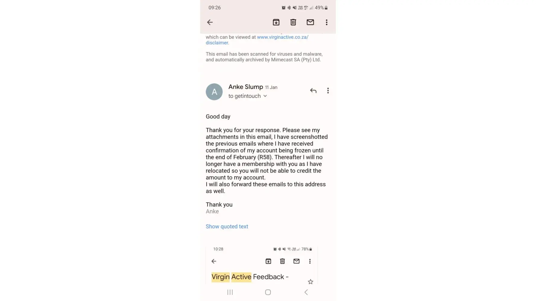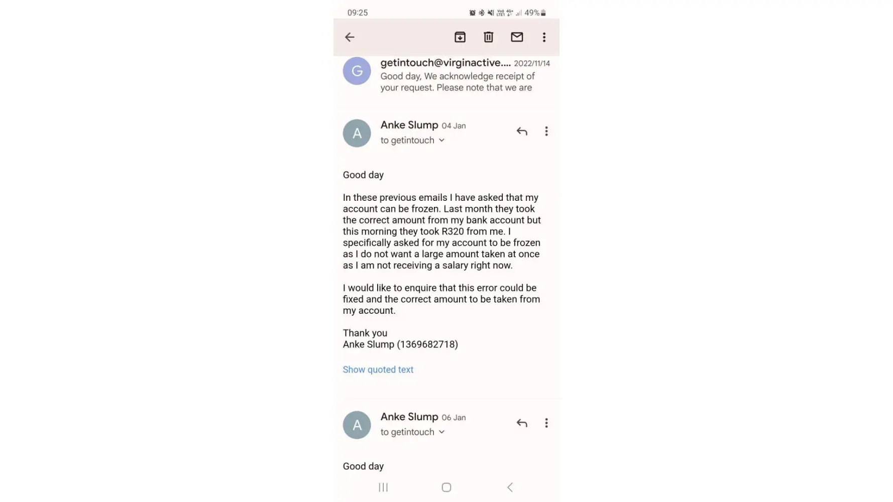I had a 2 year contract with Virgin Active that was supposed to end in April. I moved away from the gym for work and asked them to freeze my contract until April until it ends. They said they could freeze it until the 28th of February which meant they will take R58 each frozen month, thereafter I would have to freeze the account again. On 1 December 2022 they took R59 but in January they took R320. I queried them on email and they said it was a mistake they only had to take R58, so the rest of the amount will be credited for the rest of my installments. In February they took nothing. In March they again overcharged me and took R128. I asked them over email many many times if my contract will end in April and no more debit orders will be taken, no one answered me. I will attach screenshots of the emails. In April they took R320. In May they took R420. I reversed these 2 debit orders. My contract was supposed to be done and debit orders had to have stopped by then. No one answered my many emails about my queries. I also phoned and asked them to make sure that my contract is over, 2 people told me that it is canceled. Today on the 1st of June they took 2 debit orders from me. R329 and R410. I phone into accounts and a very rude lady told me that my account is still active and no one has ended it. She told me that management will be in contact with me. And she assured me that I am in the wrong and apparently I have to pay a high cancelation fee even though my contract has ended in April, I told her no one told me I have to pay a cancelation fee and I've asked many times if my contract will end in April, she told me that it was not anyones responsibility to inform me of that as it was in my contract. Even though I've sent numerous emails asking about it. No one has gotten back to me or helped me at all. This is the worst customer helpline I have ever dealt with. If it comes to money and debit orders just know that you will not be helped and you will be charged unnecessary charges.