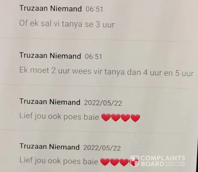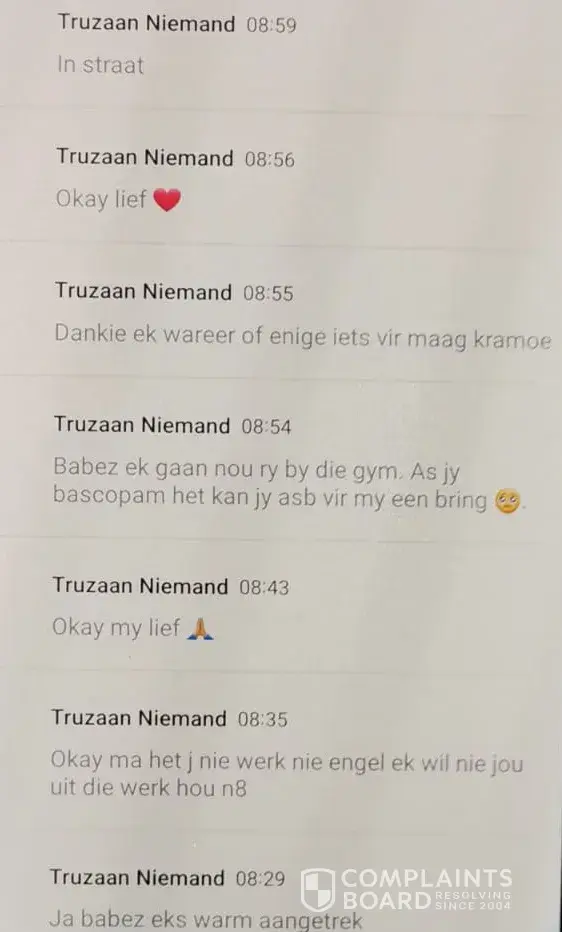 In the meantime, we continue phoning Emanuel, and he keeps promising it is rectified and will send us the proof. He never kept to his promise, and so the game continued. I send him SMS, and he makes promises.
