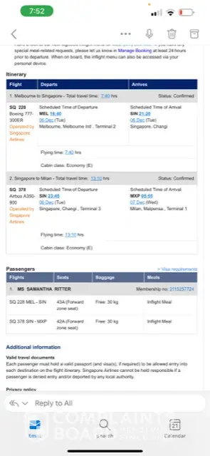 I flew on SQ back in early December. SQ booking number 69G2O4
