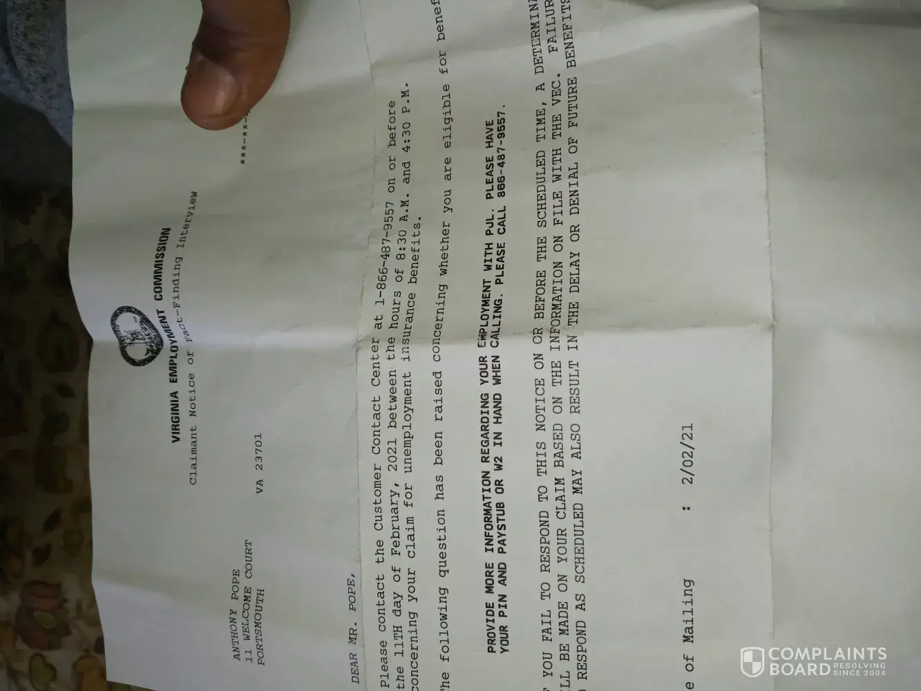Hi my name is Anthony Pope and I've been trying to get incontact with anybody with VEC and have sent tons of email. But still haven't gotten a response. I have been dealing with this matter since July of last year. I received two letters from VEC telling me to call [protected] to have scheduled call with someone from VEC/ Claimant notice of fact- finding interview. And for some reason everytime I call the states im scheduled in the system to calling. I have done everything possible trying to resolve this matter. But haven't gotten any assistance from VEC. Thank you Anthony pope. 757/339-7624