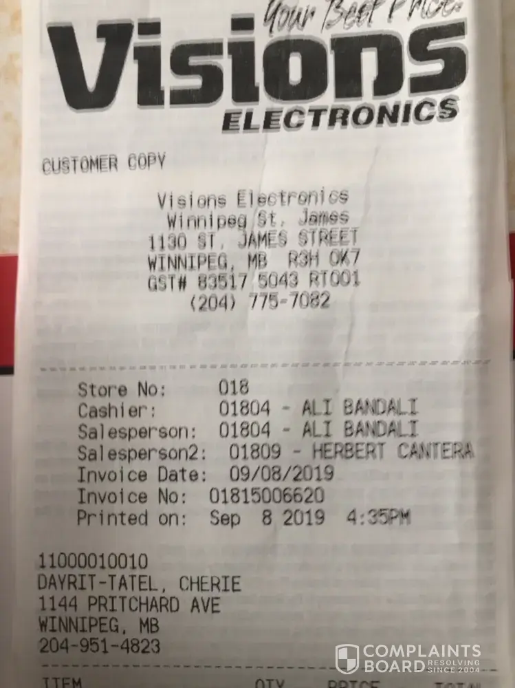 The staff and manger only care about making money for them myself and not helping customers the manger sold me the wrong TV and is no help. I’m done buying from visions the staff sucks I have spend thousands of dollars and we cannot get a tv exchange. Someone needs to fix the staff in the grande prairie branch or fired them.