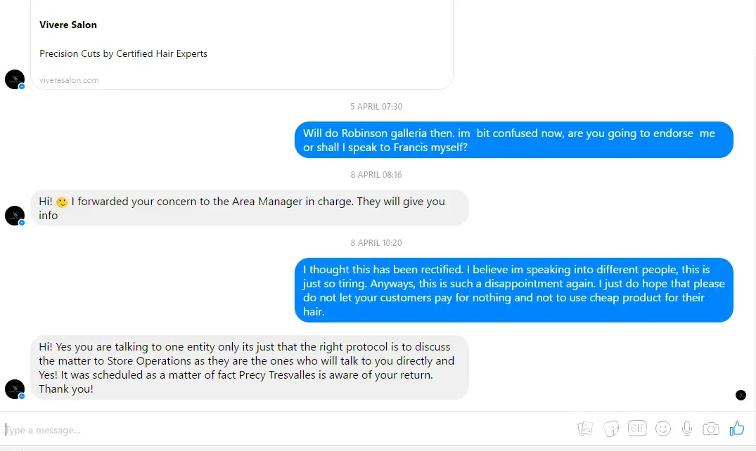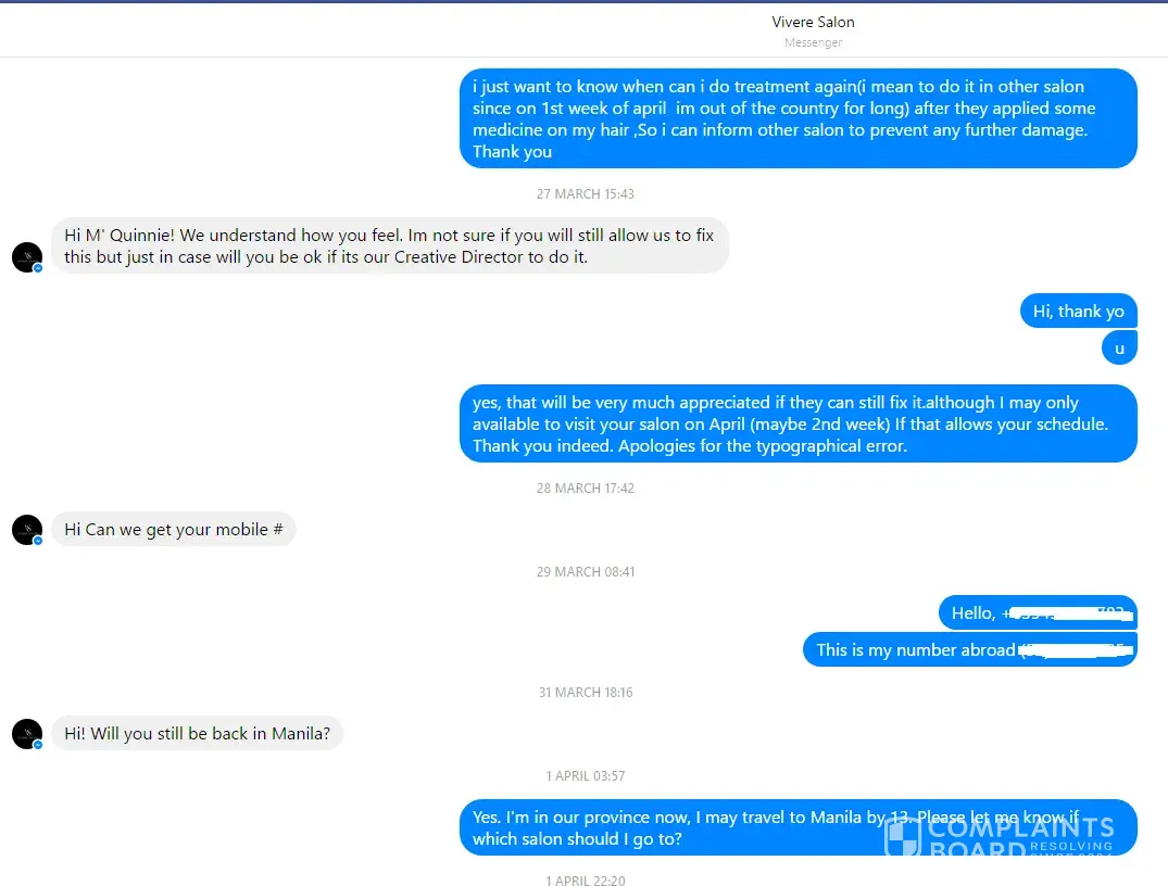 Read full complaint and 18 commentsVivere Salon complaints: history and resolution overview
