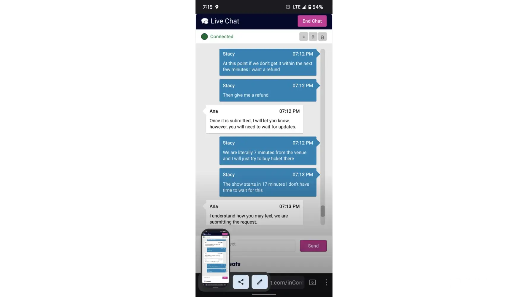 Desired outcome: All of our trips / concerts were refunded except with these people.