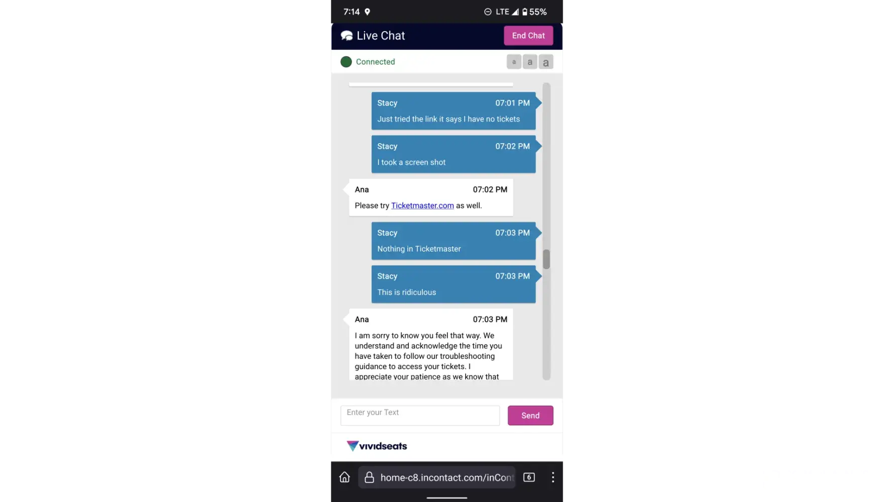 Worst experience I have had buying tickets and it was my first time buying anything from VIVID Seats. I will never purchase anything from here again and nor will I refer any my friends from purchasing anything from VIVID SEATS.