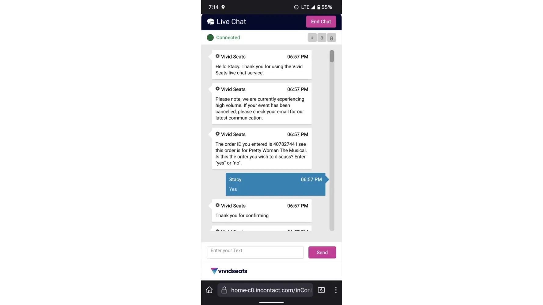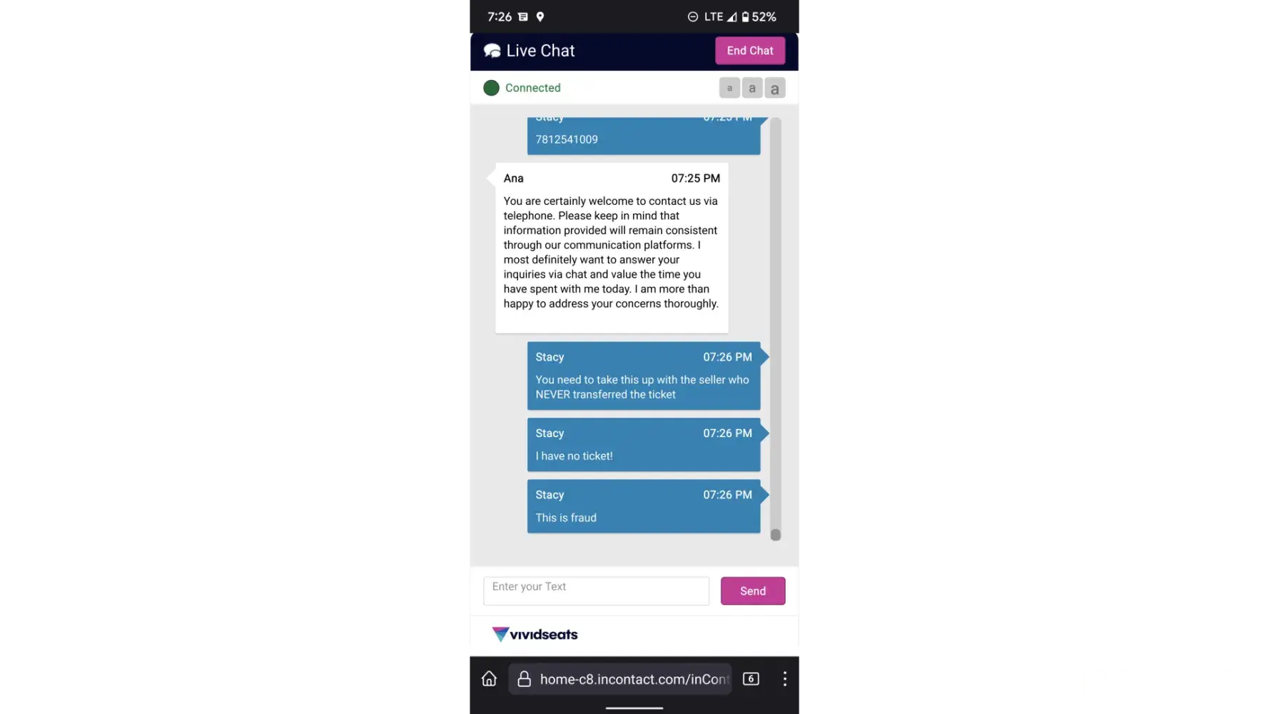 On January 20th I purchased 1 ticket to see Pretty Woman from Vivid Seats for $193 shortly before the start of the show. I received the confirmation that the purchase went though and that the ticket would be transferred to me via Ticketmaster by the seller and that I would receive an email. That email never came and the show was starting in about 45 minutes. I contacted customer service via chat to let them know. I gave them a second email to try to send the tickets to and nothing again was received. They have me a unique Ticketmaster URL to try and that showed no tickets in my account for the show (I took a screenshot). I asked for a refund as by now the show was set to start in 10 minutes. They would not and said the ticket had been transferred. I told them again there was no email for the transfer in my inbox, my spam or the secondary email I had sent and asked for a refund and to cancel the transaction. They would not. I called customer service the next day and Street an hour on the phone was told the same that the ticket had been transferred. I told them that it never was and they need to contact the seller as this person never sent the ticket to me and I felt like they had stolen $193 from me and they were not honoring their 100% guarantee and why they couldn't just cancel and refund the transaction when I asked the night before, before the show started. I told them I would give them full access to my Ticketmaster account so they could see for themselves that no ticket was transferred, they said they could not. So I asked to see a copy of the transfer of the ticket from the sellers account to me and they said they could not share that. I find it very questionable that they could not share proof of transfer with me. This is absolutely fraud and theft on Vivid Seats account and they need to be held accountable for taking my money and then receiving nothing in return.