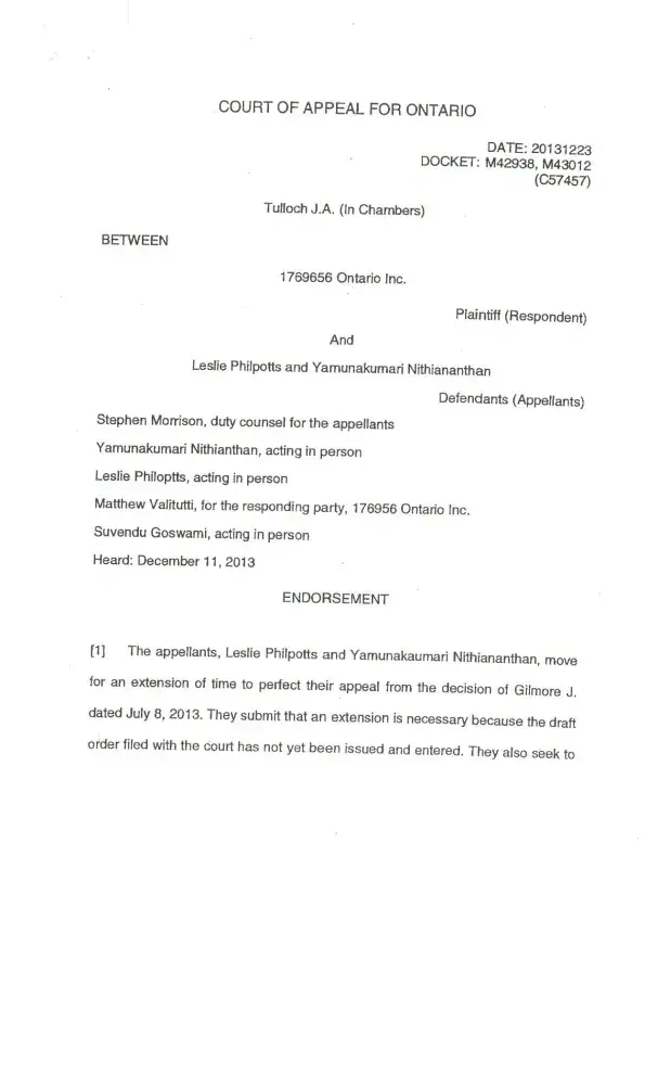 Endorsement from Ontario Court of Appeal: