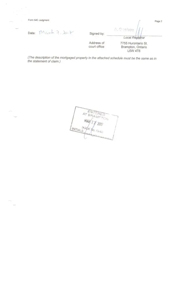 followed the Canadian legal system and obtained a Judgment on March 07/2017.