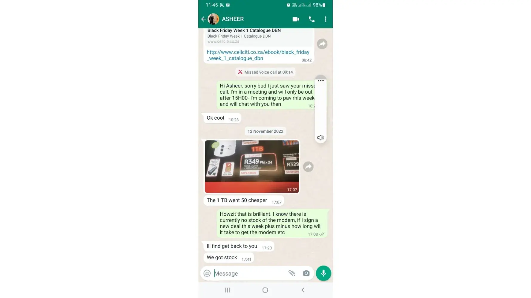 I told them I will think about which contract i will sign as my MTN data deal was maturing on the 11th of November 2022 and I was to cancel the MTN contract on the 12th of November 2022 with my wanting to sign a new data contract with Vodacom on the 19th of November 2022 as my 50th birthday is on the 20th of November.