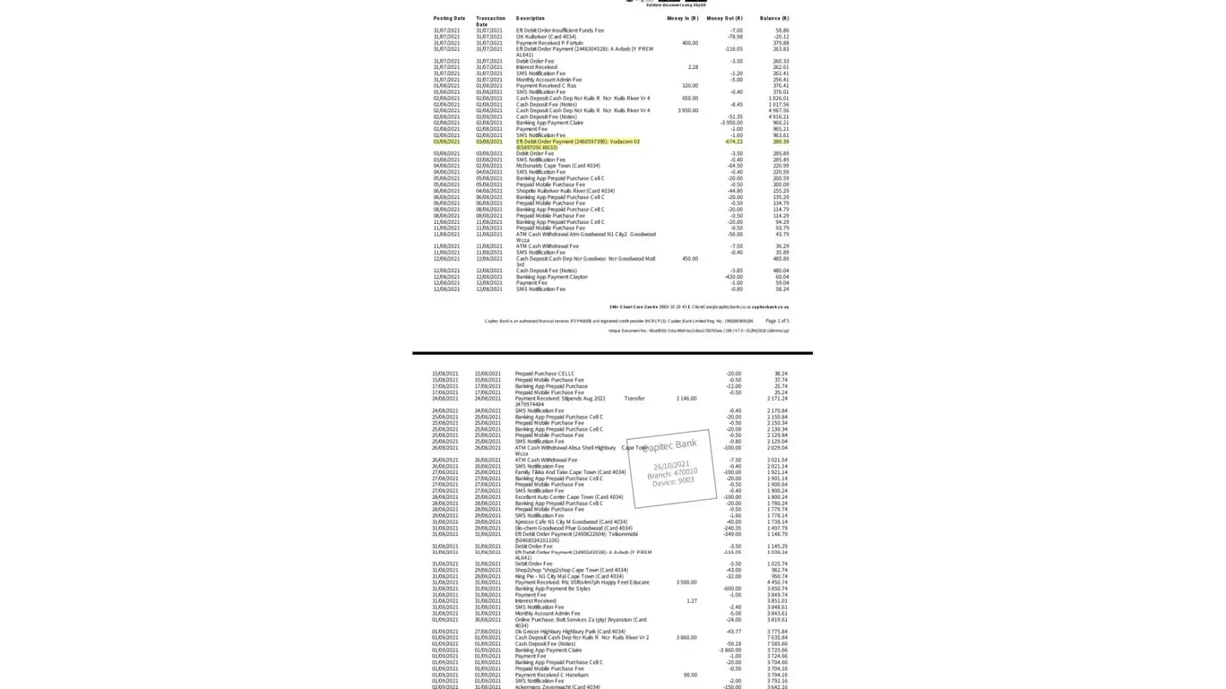 On the phone with customer service I was given the option of making an arrangement with Vodacom to pay this amount off in four parts over four months. I had agreed to pay R675 on the 3rd of the next four months to clear the debt. The 3rd of October 2021 should have been my last payment on this arrears, which was confirmed by the consultant. The consultant had advised me that the arrears amount will not increase as the Wi-Fi line has been suspended and that the R675 will be all that I need to pay for the next four months to clear the arrears amount and a day or two after the 3rd of October I would be able to call in and have the Wi-Fi turned back on at my property. This information was confirmed and reconfirmed by the customer service consultant on this phone call, I asked her just to make sure that R675 was all that I had to pay for the next four months and I wanted to ensure that the balance will not increase. The consultant, who was a lady, had reassured me each time telling me that R675 will be all.