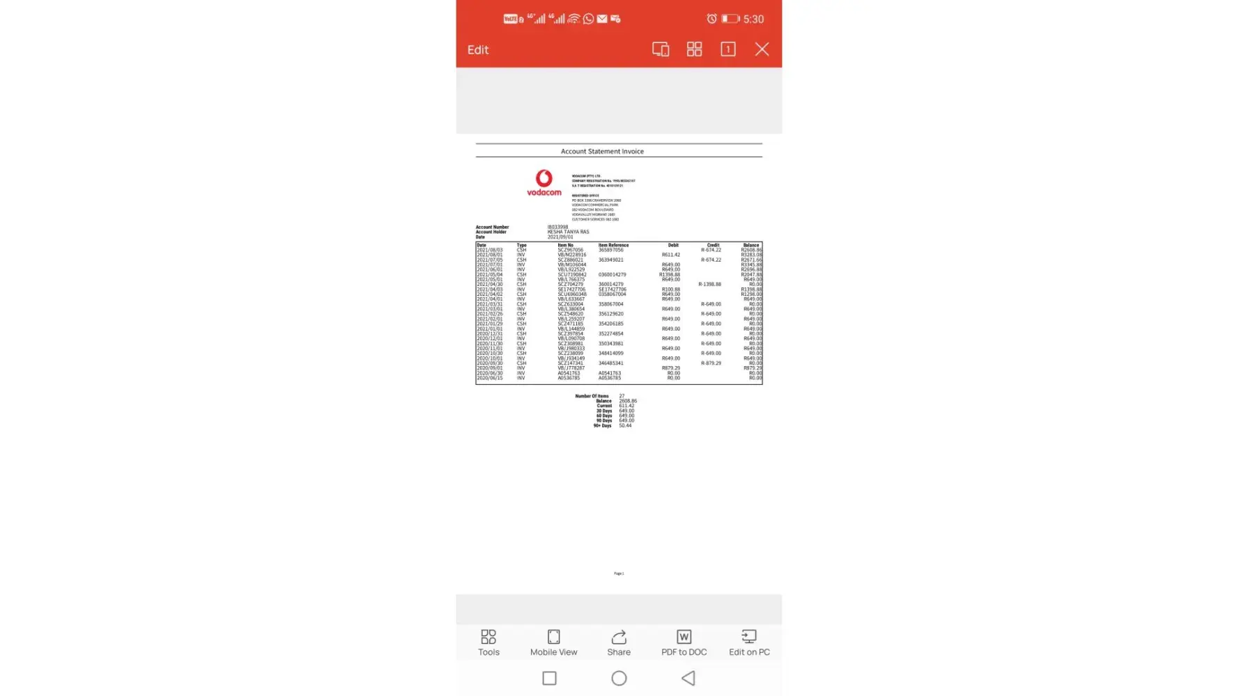 Vodacom Accounts / customer care / collections