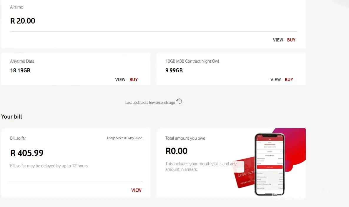 My Account was always in the region of R33 per month.