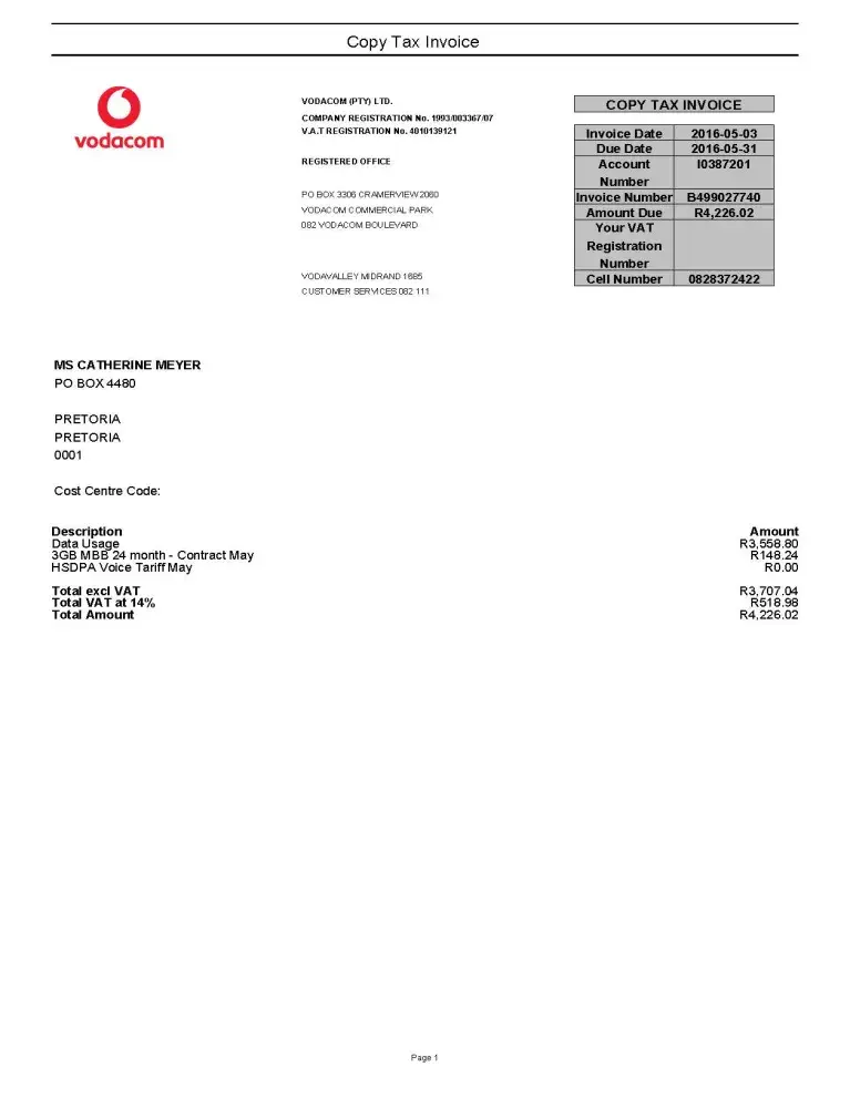 This is really not acceptable. I have 5 Vodacom contracts, all with fixed contracts, and none has every gone over the contracted amount.