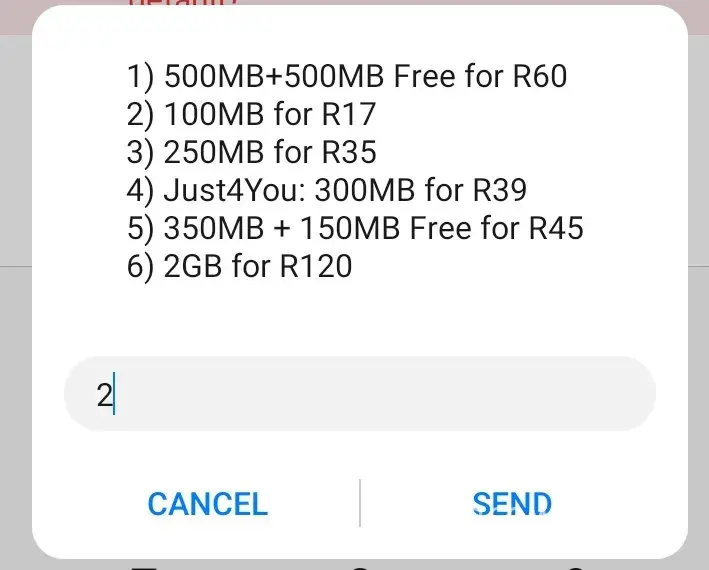Option 1: Purchase 10 GIGs for R365 (I think that was the amount?) for a month