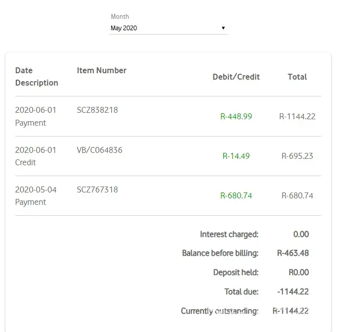 I did not get a refund, but I eventually was able to cancel the contract. I was issued with an invoice with balance of ‘R0' and all was in order 2 years later I have been hassled daily by MDB debt collection and have been blacklisted for a Vodacom contract I no longer own or own any amount on.