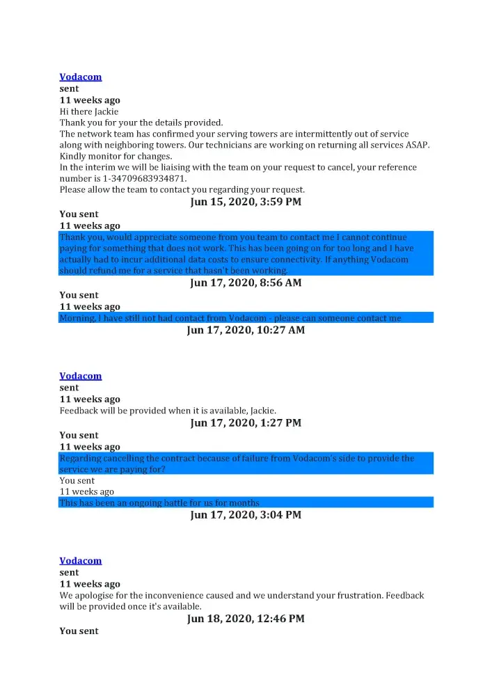 I am extremely dissatisfied with Vodacom and requested a refund of all the money paid since February 2018. I also asked to cancel my contract with Vodacom that I have had for a few years.
