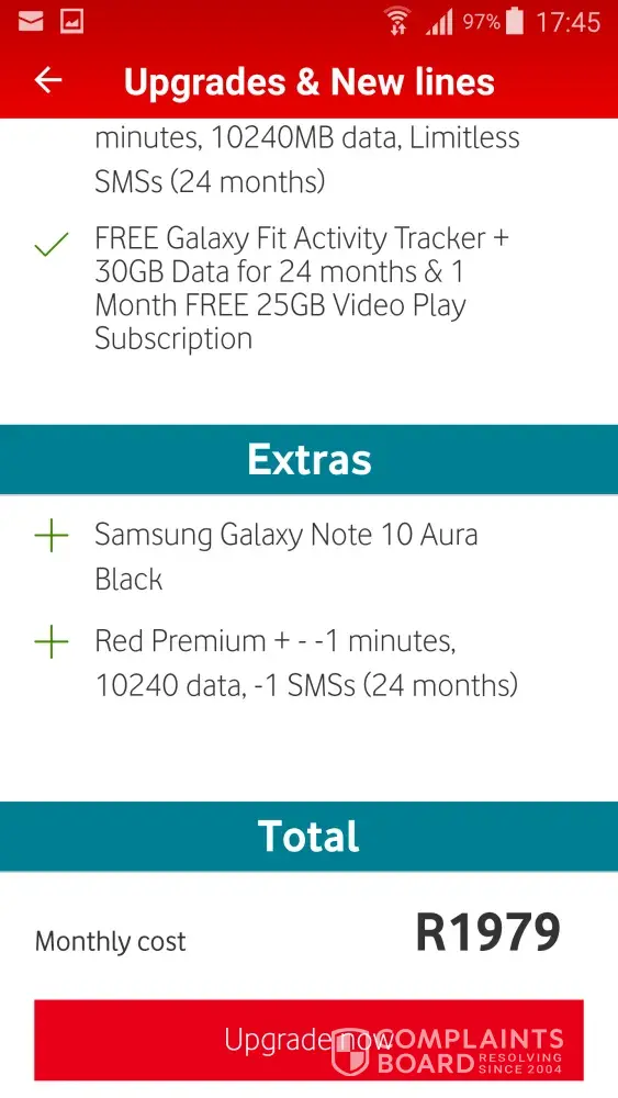 this is really bad service in respect of being charge double for another 4 months when vodacom was the one insisting on the upgrade. misleadcustomers.