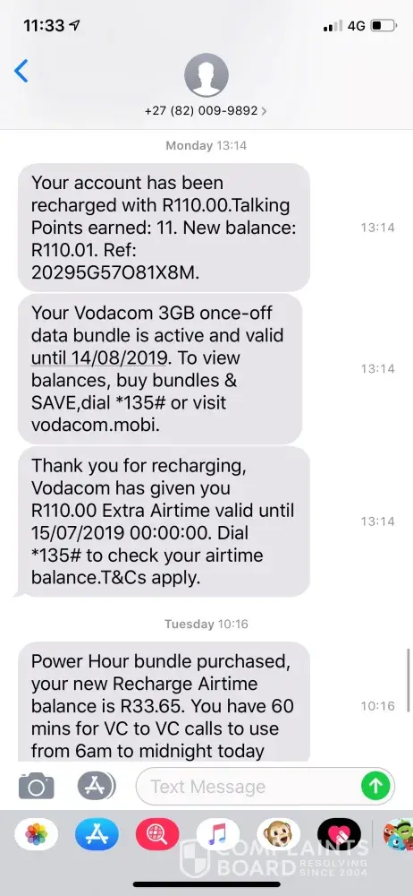 - 21:05, I subsequently called Vodacom to query this and was told that applications that use my mobile data are causing this. I have had the same phone, with the same applications running for the past year, my cellphone behaviour was no different this week. So i do not want to hear any excuses about my phone's applications. This excuse is not good enough for me.