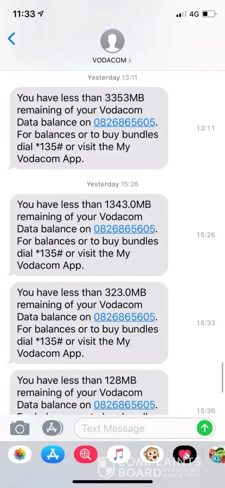 I have a serious complaint regarding my data usage this week from Vodacom. Please see below sequence of events together with supporting screenshots.