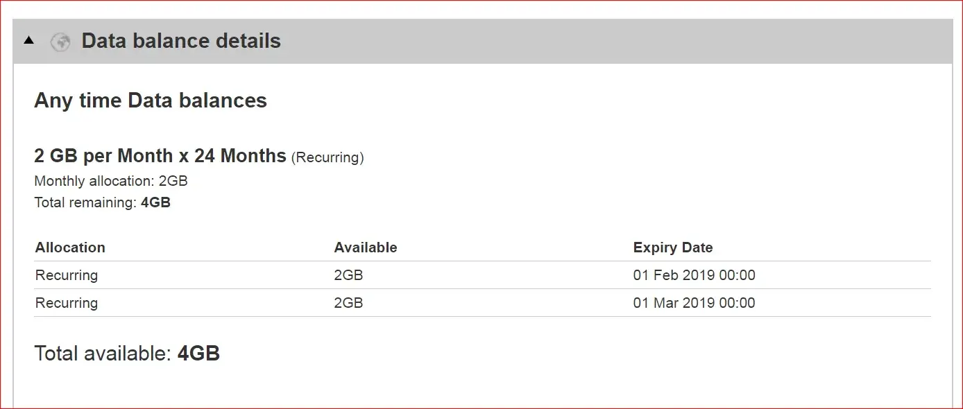 This means that I'll will have to use up the 1G reoccurring data and the once off will expire on 16 Jan 2019, leave me 15 days without data.