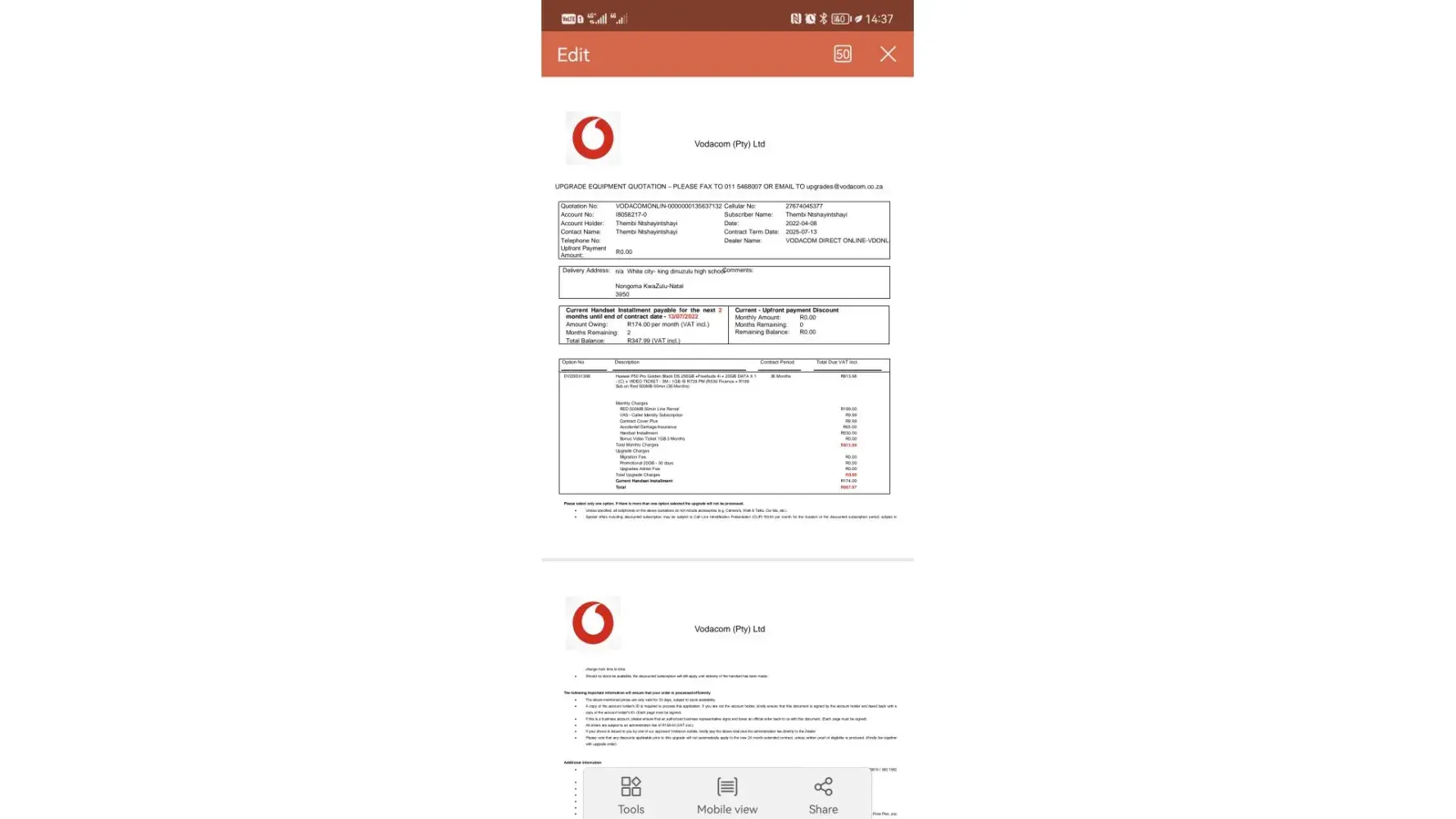 Below i have attached statement showing i upgraded from p40 huawei after damage to huawei p50.