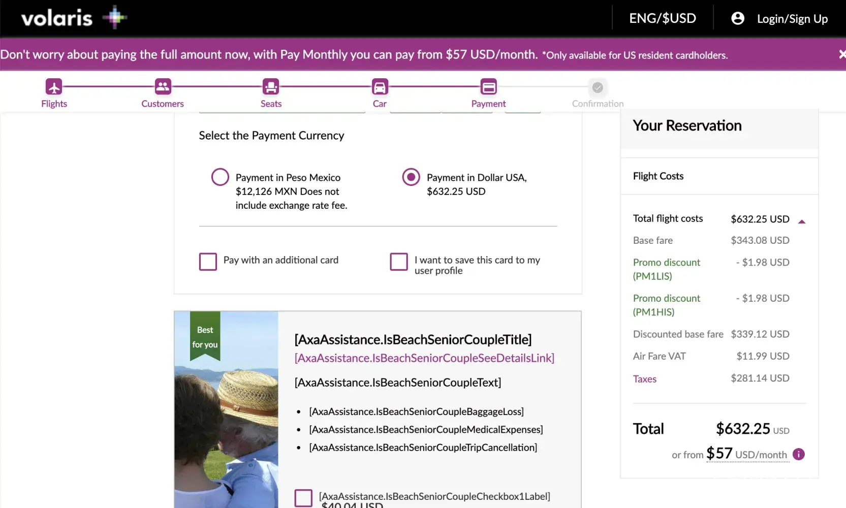 Every part of my journey with Volaris was met with problems. They tried to charge us money to check in at the counter even though we had to do so with luggage, so we stood in front of the desk and checked-in online. Then they denied that we had paid for checked luggage and tried to charge us again. The service representatives were rude at every point.