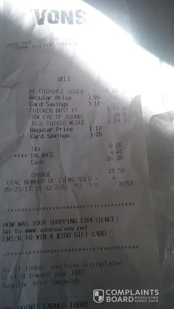I am not asking for a refund - but please ensure me this will not happen again to another long term Vons customer such a myself.