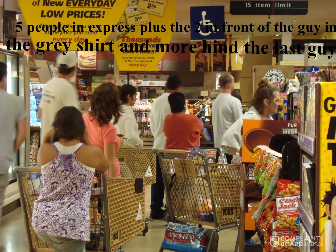 They are continually in defiance of all that it commen sense and oblivious to customer service, and almost seemingly purposely avoids their customers and almost in defiance throws the von's customer service hotline 800 # at you, almost taunting the customer with this info as this is the answer why they don't have to work efficiently, or open a new checkout line when there are 20+ people all waiting in disgust with this place!
