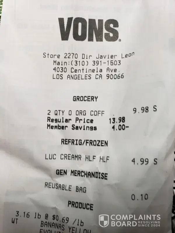 Desired outcome: Vons/Safeway to investigate/admit of what I file.