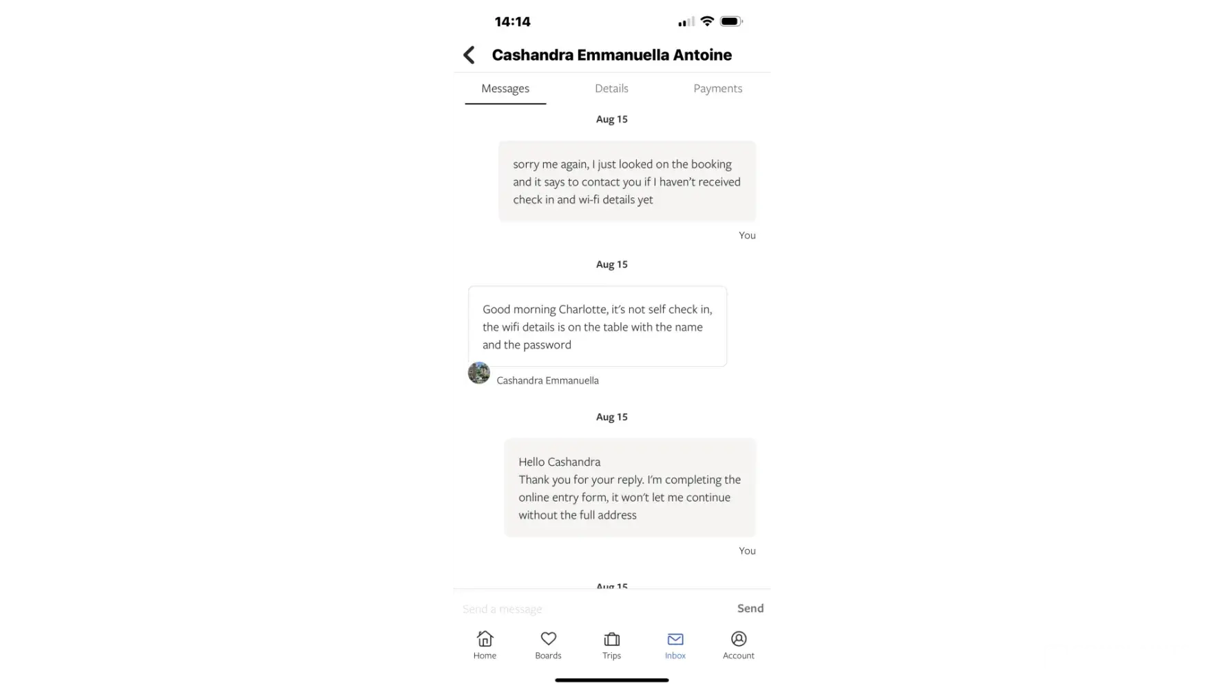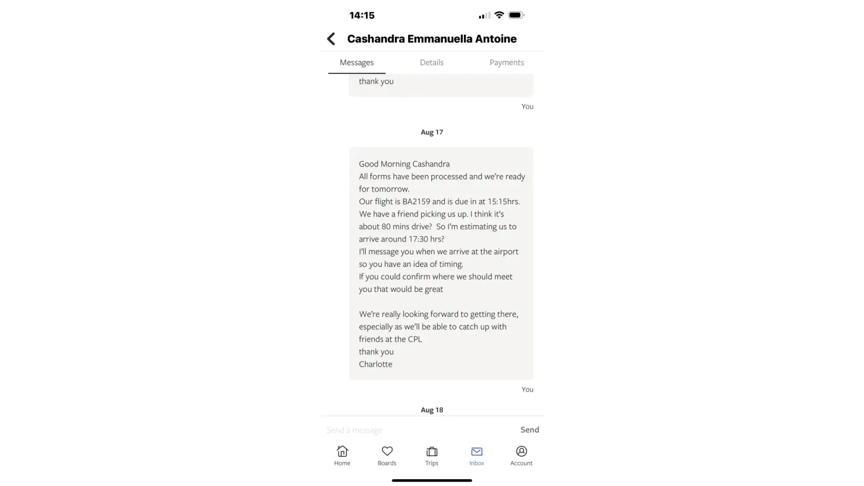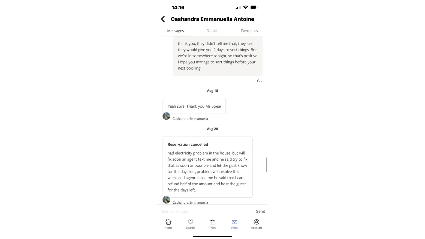 Just as we had gone through UK security at Gatwick and were waiting for our flight, the host messaged to say there was an electrical problem and we couldn't stay there.