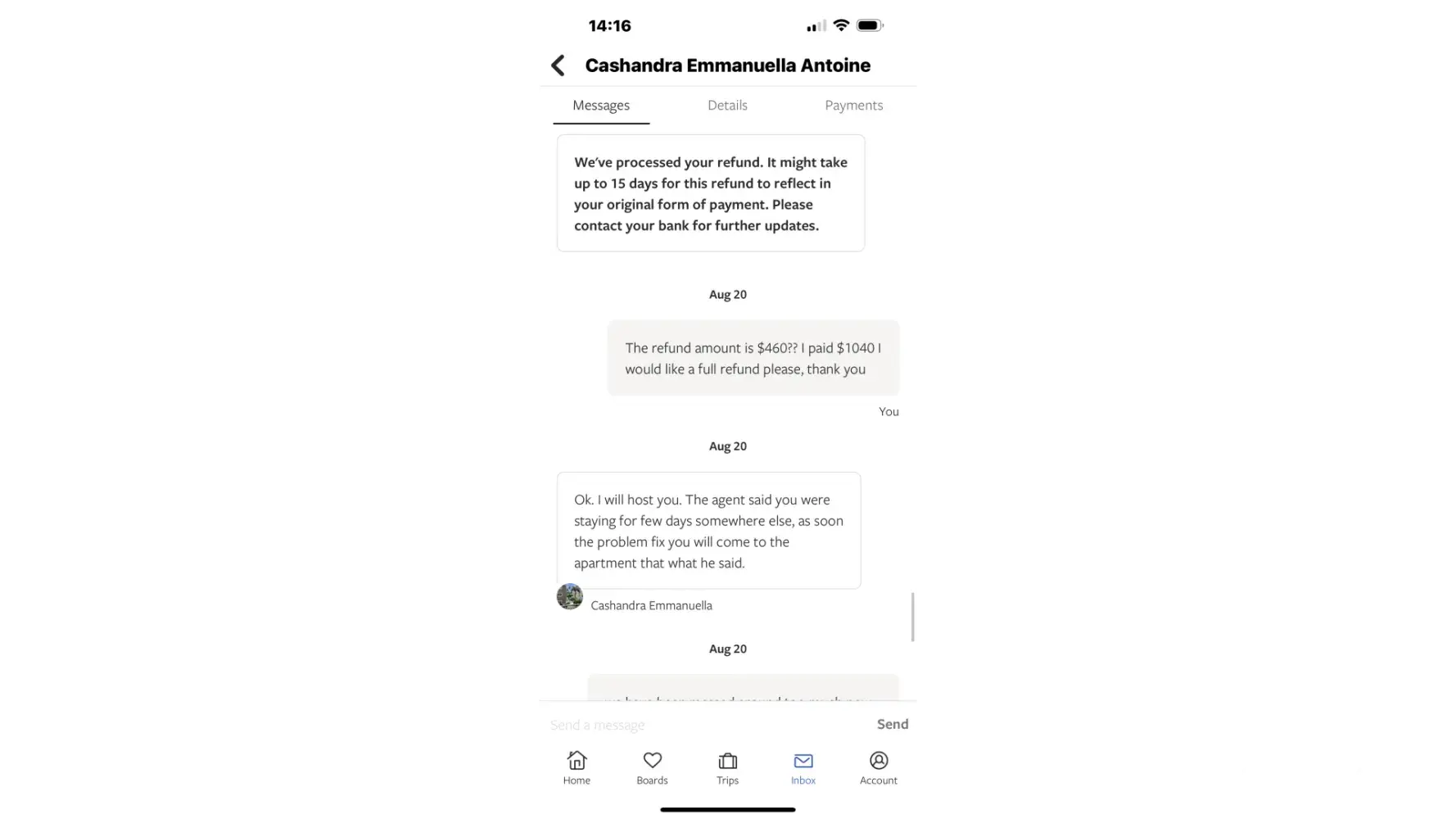 Issue with property being doubled booked and not receiving refund!