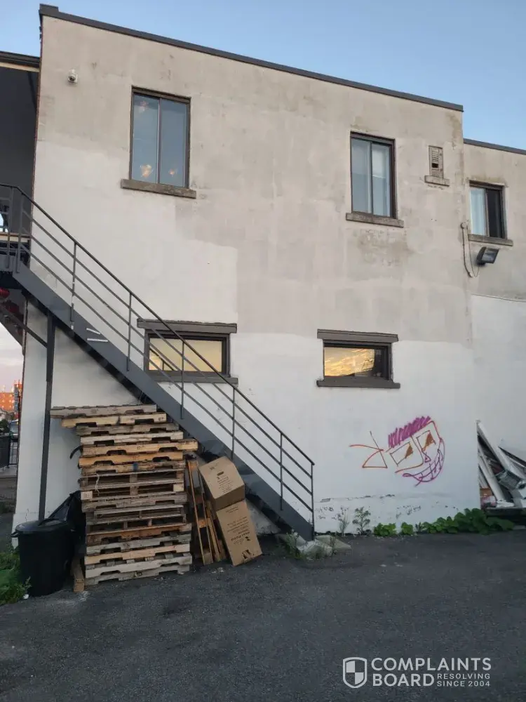 1. It has no main access other than the unsafe metal stares on the side of the building. Meaning that incase of a fire, we will be stuck.