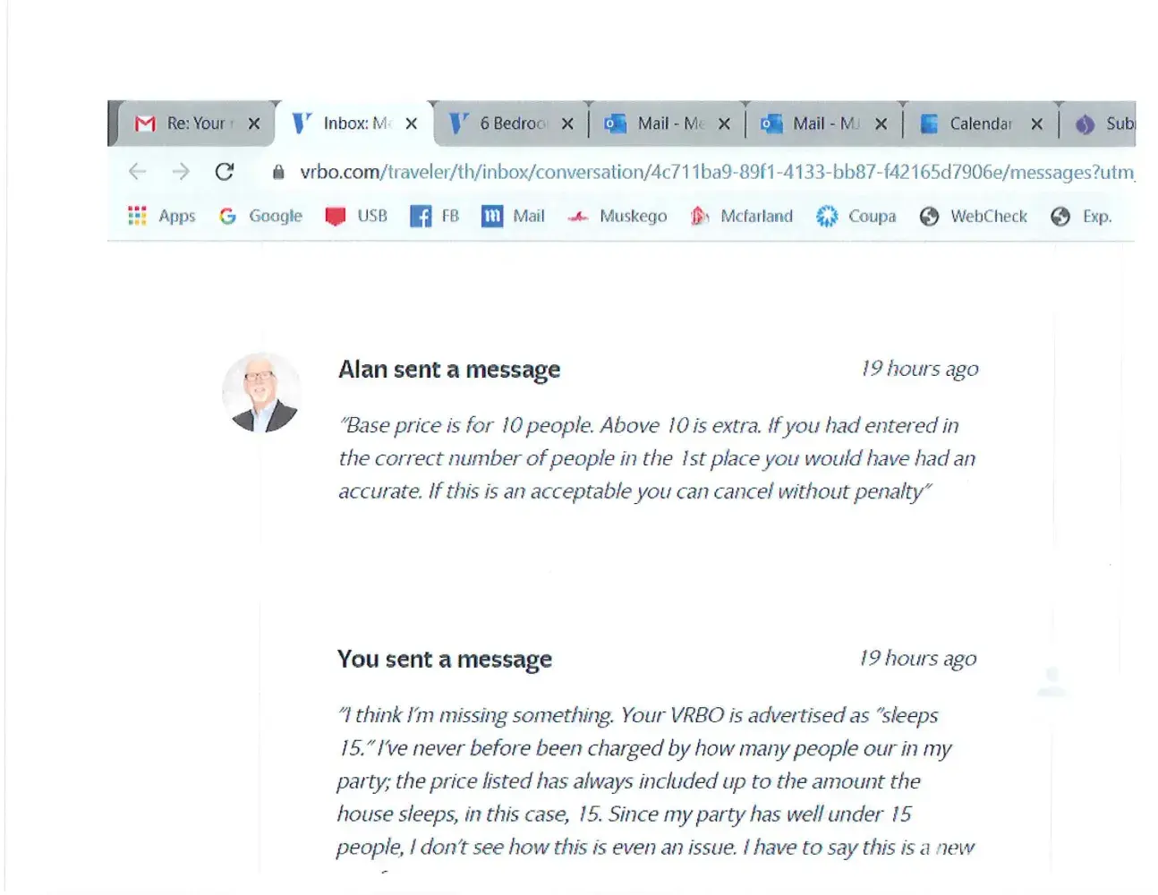 I also have to question his 51 five-star ratings. Did 51 people really OK him asking their ages and charging extra for more than 10 people? In a house that sleeps 15, I would imagine that all parties that stay there consist of more than 10 people.