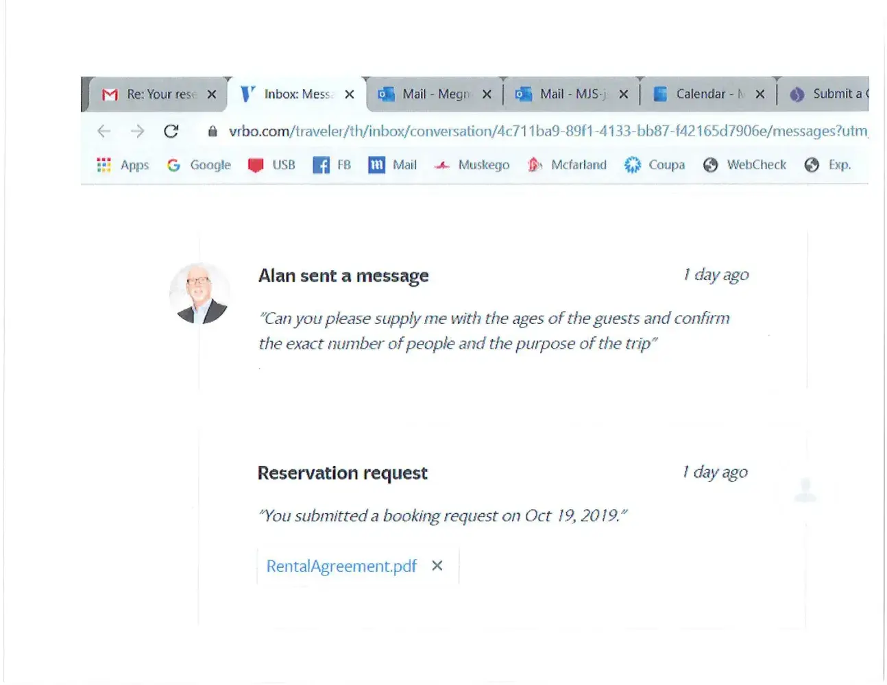 After I made the reservation this past Saturday (Oct. 19) the owner accepted it and then asked me how many people where in my party and what their ages were, which I thought very strange since I've stayed in VRBOs before and have never been asked these questions.