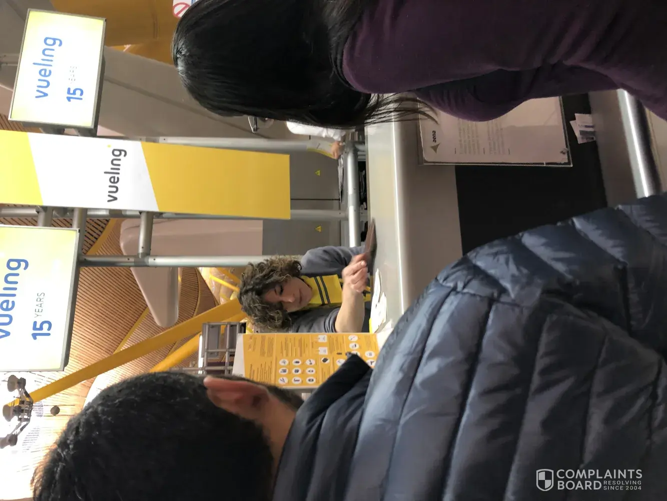 The two men checking boarding passes were rude. Not my first complaint as Vueling Airlines seems to have the worst customer service. I have better customer service at the Burger King in Barcelona airport...
