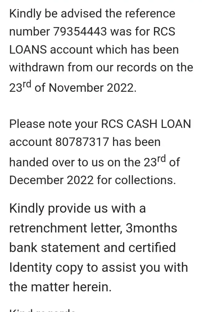 Worst debt collector by far consultant's and management doesn't understand what the term medical boarded means keep on harassing a person even after providing them with all information requested by the consultant case was previously withdraw by Rcs and reopened after a month under new reference now asking same questions again