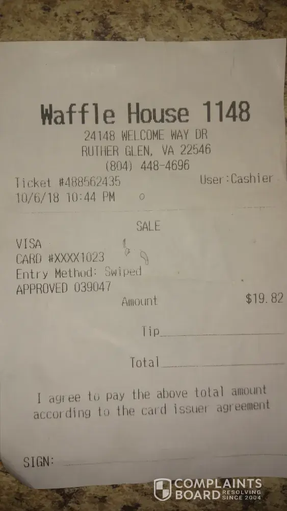 I have been to waffle house at least 30 times in past 2 years and on 3 occasions, had to write about bad situations. Well, I sent in a complaint about terrible service, crappy food and waiting time was off the wall.