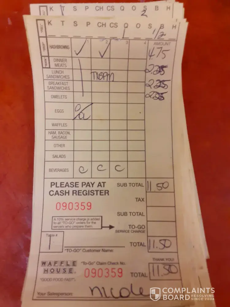 Read full complaintAbout Waffle House