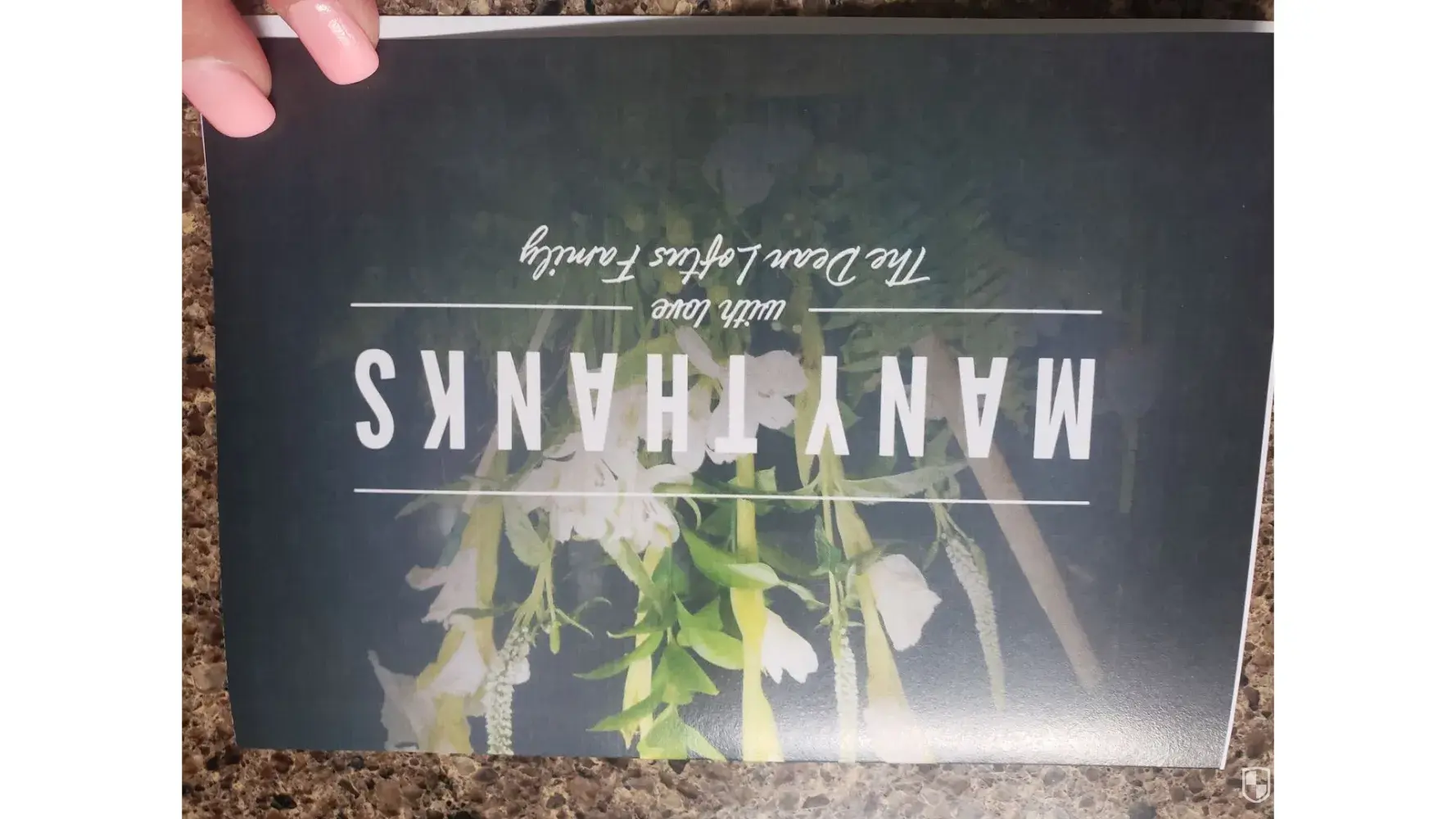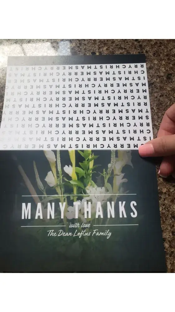 After picking up the order I found that the cards were printed with "Merry Christmas" all over the back of the card. When reviewing online I found that is the default setting for this thank you card. You have to manually go in and select a plain white background.