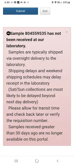 Later that evening I got a note on my inquiry that the packet arrived damaged and the test cannot be performed.