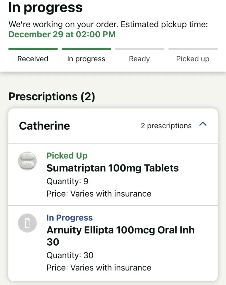 This occurred at Walgreens 9616 Harford Road, Baltimore, MD 21234. I put my prescription in for my monthly asthma medicine on December 29. The status on the app said it was "processing" and would be ready December 29 in the evening. Well that never happened. As of today it still said "processing" and another RX I had put in was just randomly canceled. I...