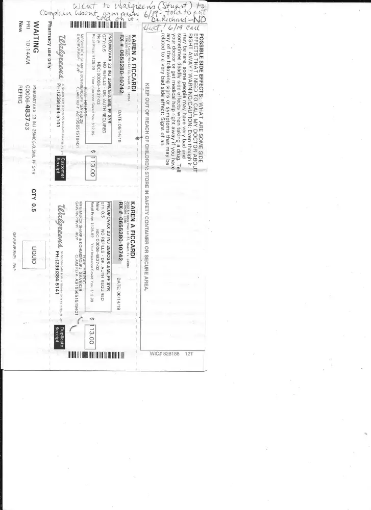 On 06/14/19 I received a pneumonia shot(RX# [protected]) from the Walgreens pharmacist (30 Golden Gate Blvd W, Naples) [protected]) who improperly injected me too high on my shoulder causing severe pain. An MRI proved that the injection caused a tear in my rotator cuff and frozen shoulder. I had severe pain and a very limited range of motion in my right...