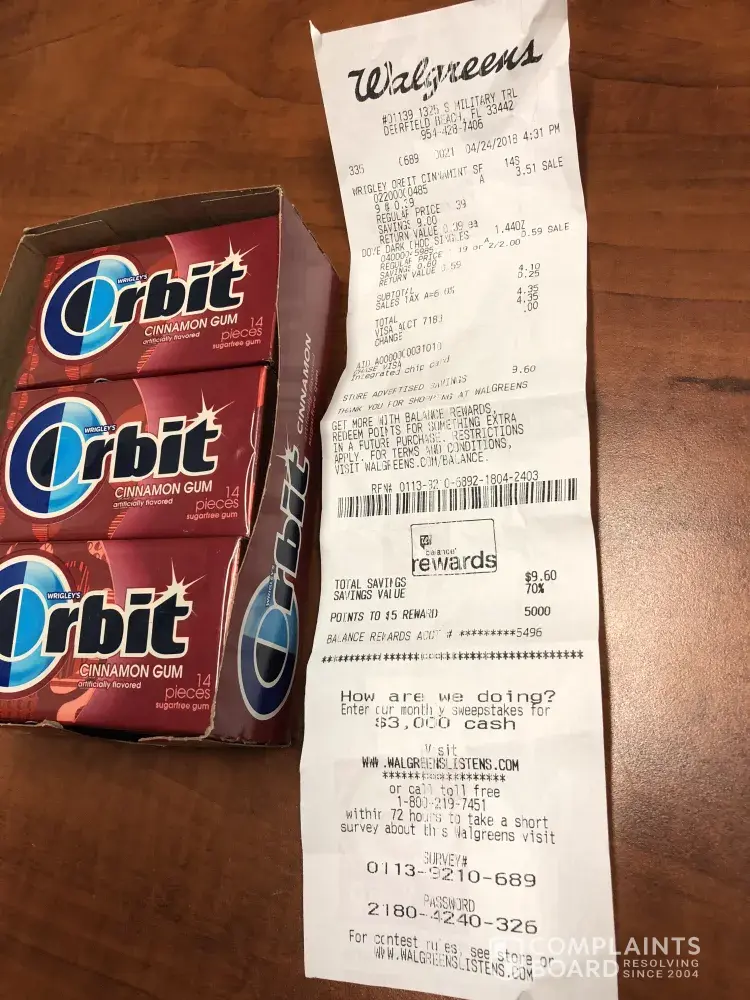 As an avid Walgreens shopper, I was disappointed to discover the gum I purchased at my local Walgreens was expired for over two months! Perhaps that is why the gum was on sale. I saw the sale price of .39c and thought I was getting a good deal. So I bought all of the remaining packs on the shelf. However, when I got home and looked carefully at the package I saw the expiration date of "20FEB18" which is over two months ago. This is quite disturbing, to think Walgreens would have expired product on the shelf. What's more disturbing that Walgreens would sell that expired product!