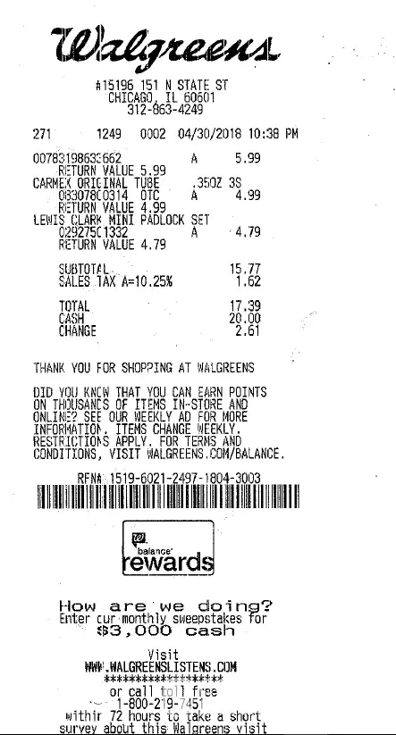 On april 30 at 10.38 pm I visited the Store 15196 151 n State ST Chicago IL 60601,