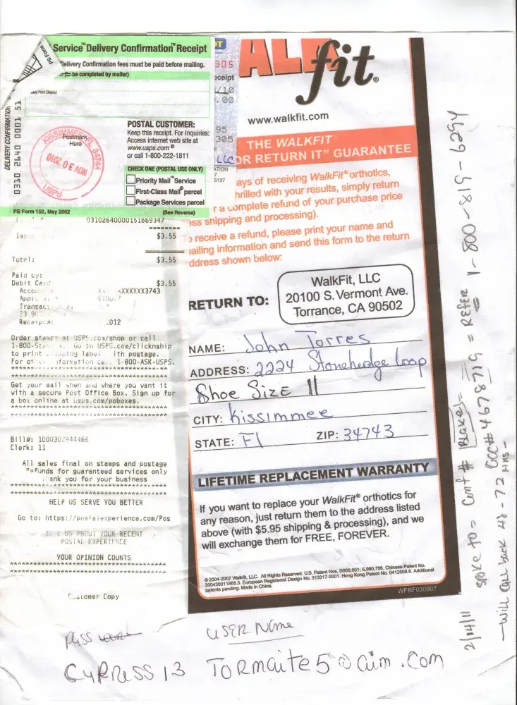 Ordered Walkfit SOLES...got it in the mail and it accompanied two bottles of vitamins that I NEVER ORDERED...then a few weeks later then sent me another two bottles of vitamins for $39.95! WHICH I NEVER ORDERED. They say it was in the package a letter...why would I read a letter when i did not order it. This is such a shady way of doing business. Now I have to return the package...my time, my expense before they refund my money. FOR WHAT? i did not order this. If you place an order it should be part of your online order at the end...you know how much you got charge. not that a letter will be enclosed and if you don't respond they send it to you automatically and bill you... I DID NOT ORDER THIS. THIS IS A VERY SHADY WAY OF DOING BUSINESS. I am so upset. I hope you can help and stop this way of doing business. Just like magazines do, they just send it to you without ordering and if you don't cancel they just bill you.. disgusting!