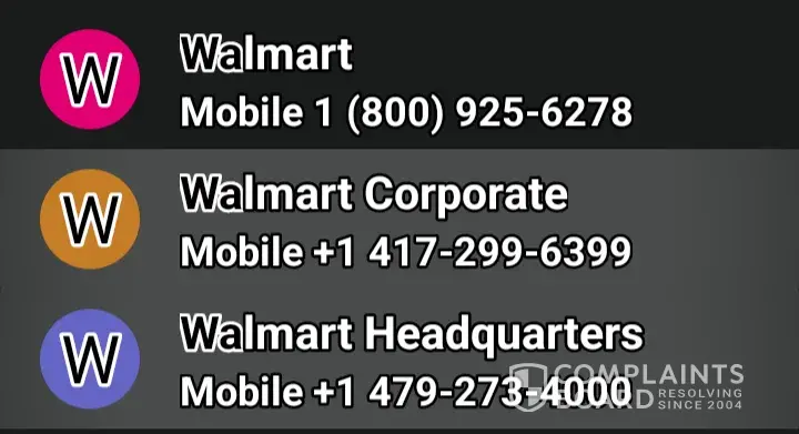 2) Contact numbers I used for Walmart...