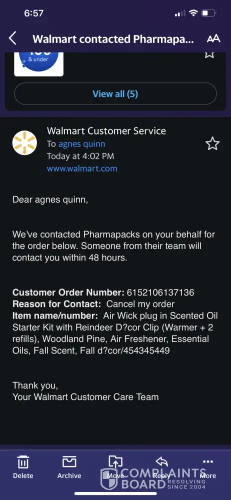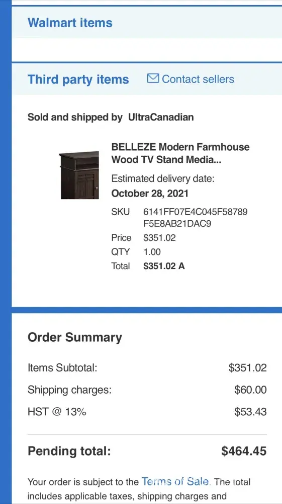 Nov. 13, 2021 - Walmart forwarded issue to UltraCanadian (the seller)