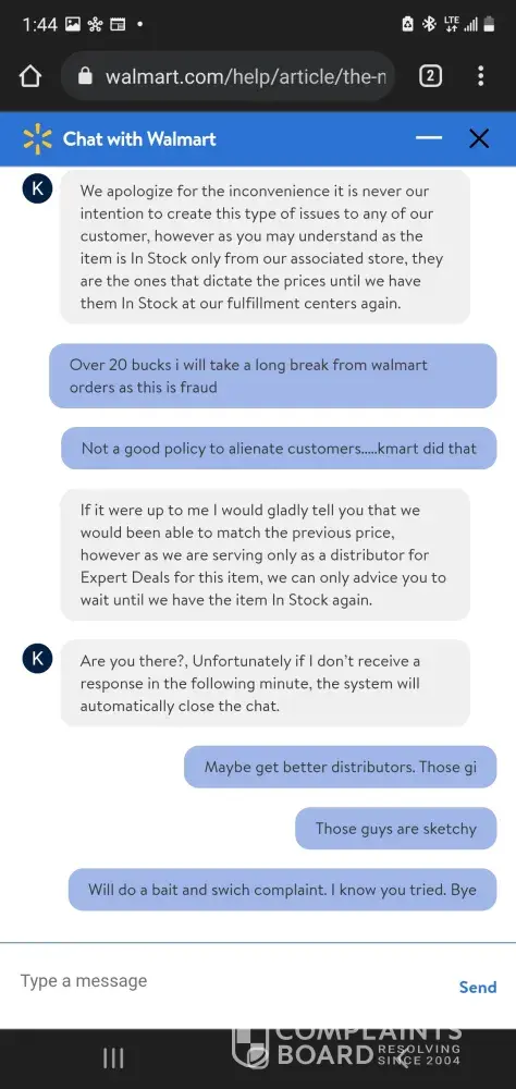 Conclusion: I have exhausted my recourse with Walmart and am out $464.45.