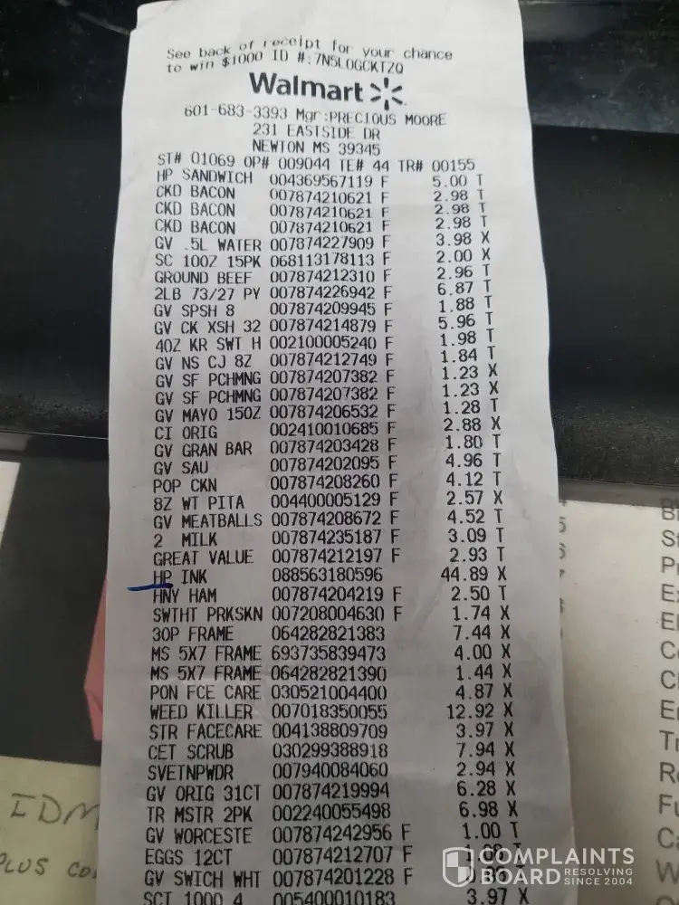 I then brought this to the attention of Walmart, who said there was nothing they could do and would not refund the rest of the money that I had paid.