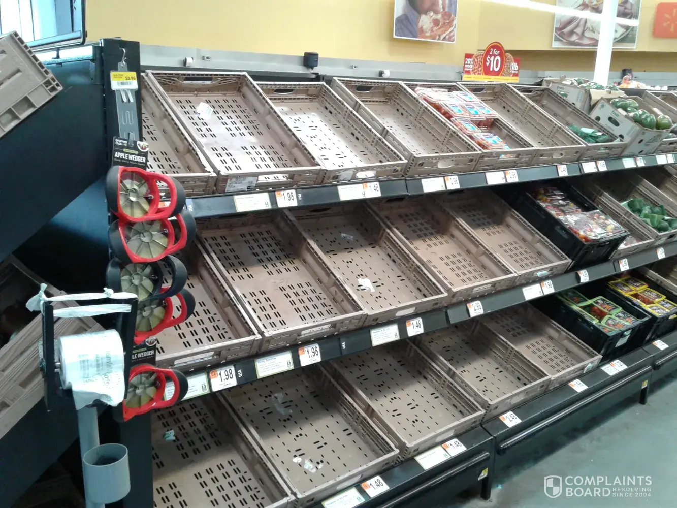I take my time to drive to this Walmart Store located at 9191 West Flagler in MIami Florida 33174 and you find yourself with empty shelves in the vegetable and fruit area (see pictures attached).